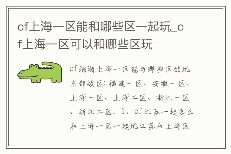 cf上海一區能和哪些區一起玩_cf上海一區可以和哪些區玩