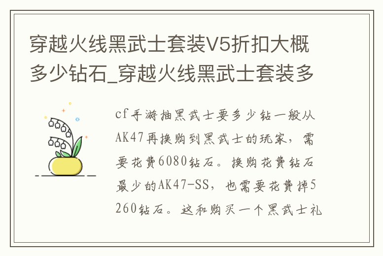 - 穿越火線黑武士套裝V5折扣大概多少鉆石_穿越火線黑武士套裝多少錢