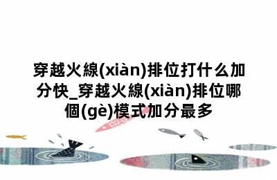 穿越火線(xiàn)排位打什么加分快_穿越火線(xiàn)排位哪個(gè)模式加分最多