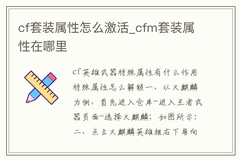 cf套裝屬性怎么激活_cfm套裝屬性在哪里