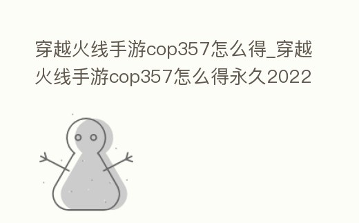 穿越火線手游cop357怎么得_穿越火線手游cop357怎么得永久2022
