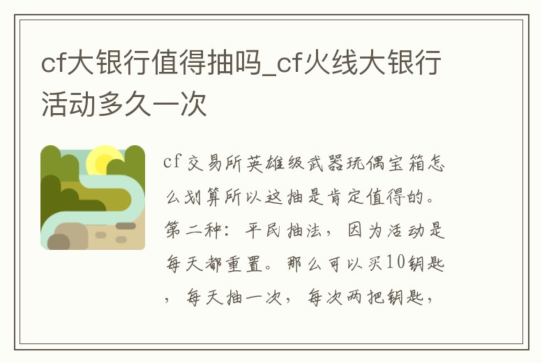cf大銀行值得抽嗎_cf火線大銀行活動多久一次