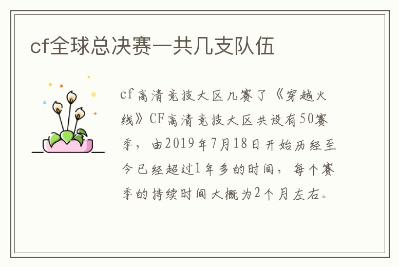 cf高清競技大區幾賽了《穿越火線》CF高清競技大區共設有50賽季,由2019年7月18日開始歷經至今已經超過1年多的時間,每個賽季的持續時間大概為2個月左右。在這50賽季的比賽中,我們經歷了CF高清競技大區的起落變化,以