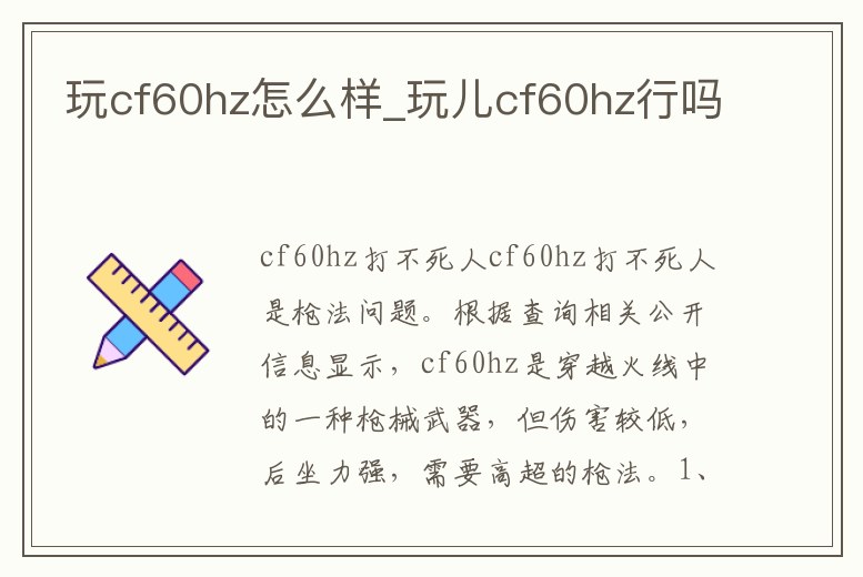 cf60hz打不死人是槍法問題。根據查詢相關公開信息顯示,cf60hz是穿越火線中的一種槍械武器,但傷害較低,后坐力強,需要高超的槍法。