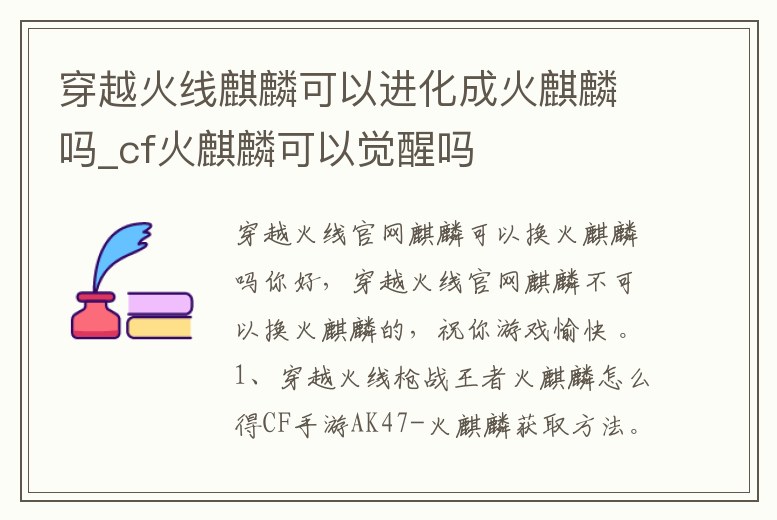 穿越火線麒麟可以進化成火麒麟嗎_cf火麒麟可以覺醒嗎