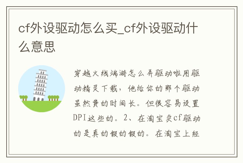穿越火線端游怎么弄驅動啦用驅動精靈下載,他給你的那個驅動雖然費的時間長。但很容易設置DPI這些的。2、在淘寶賣cf驅動的是真的假的假的。在淘寶上經相關部門檢查賣cf驅動的是假的多,真的少,而且就算是真的,使用也不穩定,很容易被封號,所以基本上