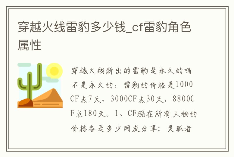 穿越火線雷豹多少錢_cf雷豹角色屬性