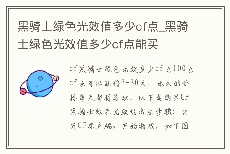 黑騎士綠色光效值多少cf點_黑騎士綠色光效值多少cf點能買