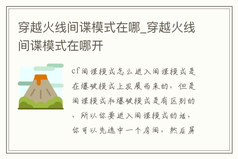 穿越火線間諜模式在哪_穿越火線間諜模式在哪開
