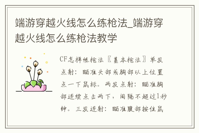 端游穿越火線怎么練槍法_端游穿越火線怎么練槍法教學