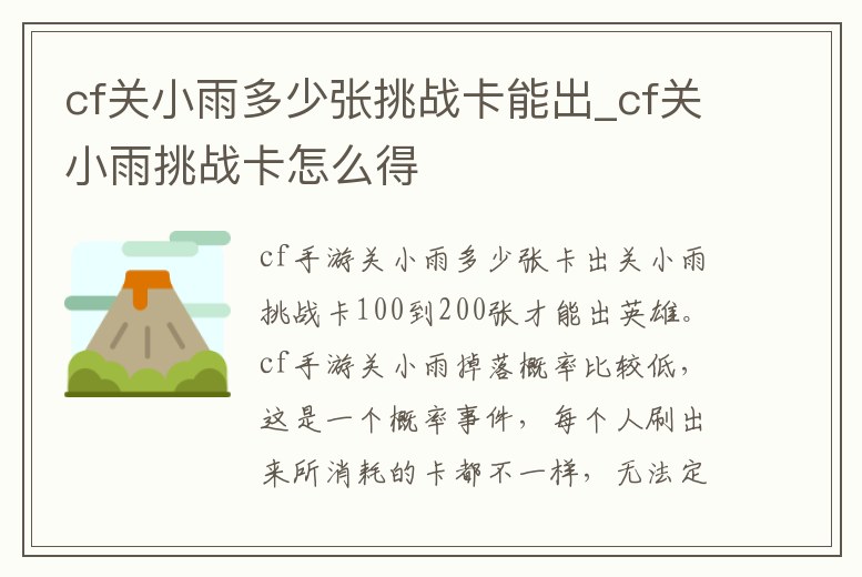 cf關(guān)小雨多少?gòu)執(zhí)魬?zhàn)卡能出_cf關(guān)小雨挑戰(zhàn)卡怎么得