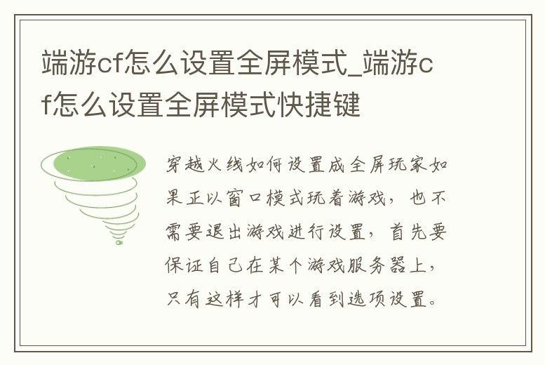 端游cf怎么設置全屏模式_端游cf怎么設置全屏模式快捷鍵