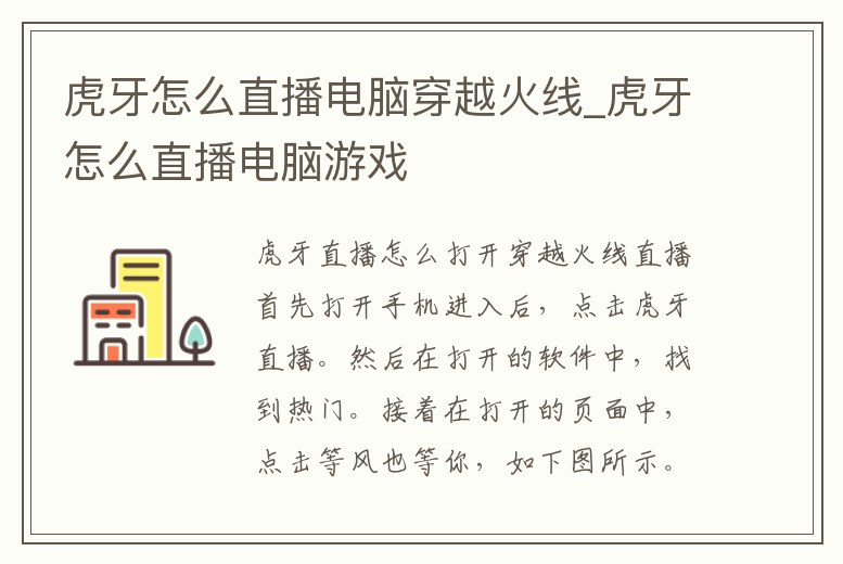 虎牙怎么直播電腦穿越火線_虎牙怎么直播電腦游戲