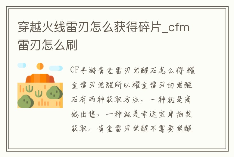 - 穿越火線雷刃怎么獲得碎片_cfm雷刃怎么刷
