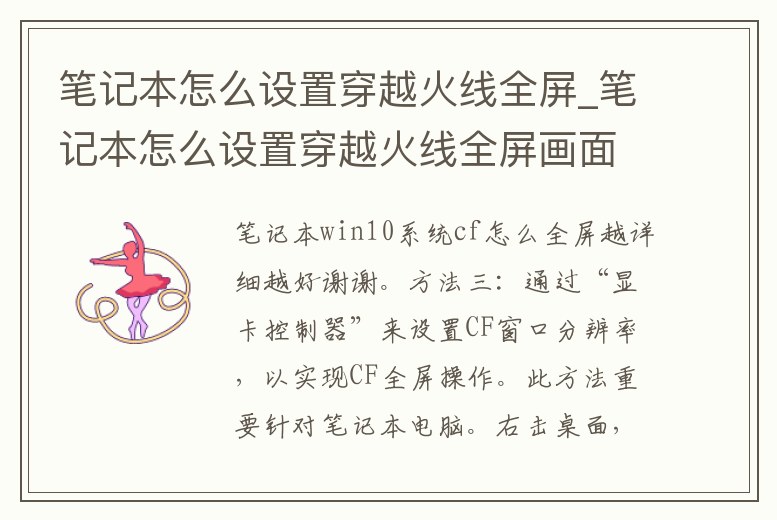 筆記本怎么設置穿越火線全屏_筆記本怎么設置穿越火線全屏畫面
