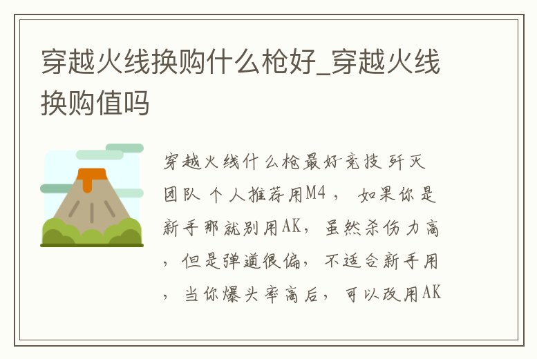 穿越火線換購什么槍好_穿越火線換購值嗎
