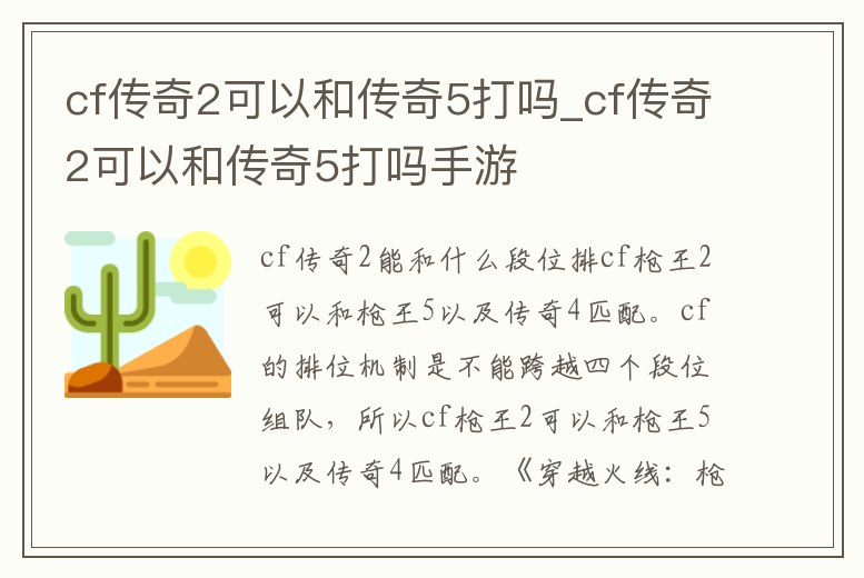 cf傳奇2可以和傳奇5打嗎_cf傳奇2可以和傳奇5打嗎手游