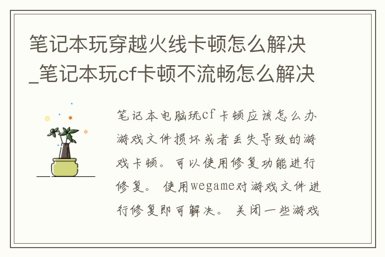 筆記本玩穿越火線卡頓怎么解決_筆記本玩cf卡頓不流暢怎么解決