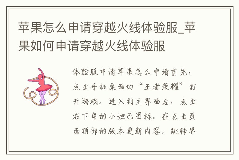 蘋果怎么申請穿越火線體驗服_蘋果如何申請穿越火線體驗服