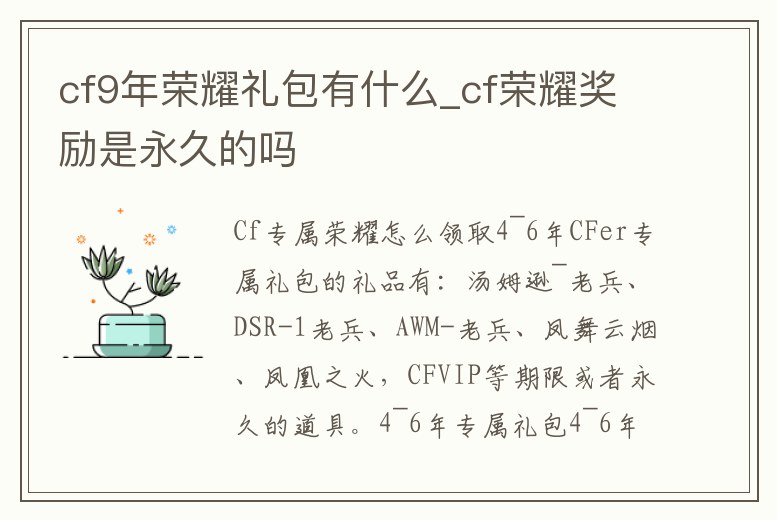 cf9年榮耀禮包有什么_cf榮耀獎勵是永久的嗎