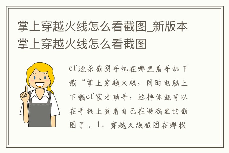 手機下載“掌上穿越火線,同時電腦上下載cf官方助手,這樣你就可以在手機上查看自己在游戲里的截圖了 。