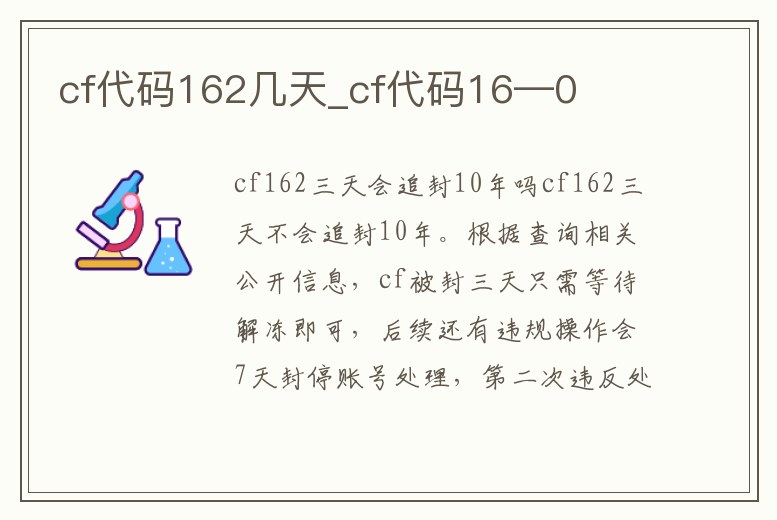 cf162三天會追封10年嗎cf162三天不會追封10年。根據查詢相關公開信息,cf被封三天只需等待解凍即可,后續還有違規操作會7天封停賬號處理,第二次違反處于15天封停處理,第三次違反處于30天封停處理,超過三次者,將對其賬號給予永久停封的處罰。1、《cf》安全數據上報異常16-2是什么原因cf安全數據上報異常16-2是外掛被系統檢測到的原因。其實162穿越火線的意思是系統檢測到玩
