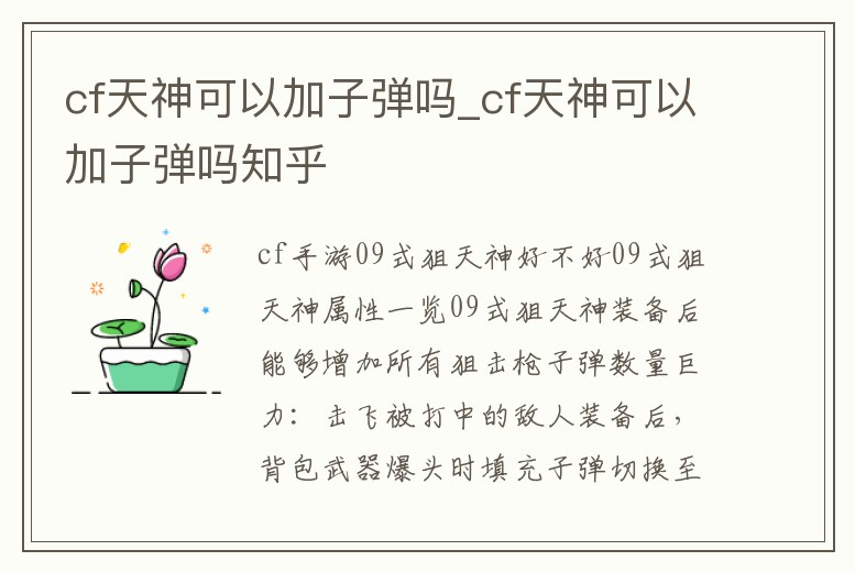 cf天神可以加子彈嗎_cf天神可以加子彈嗎知乎