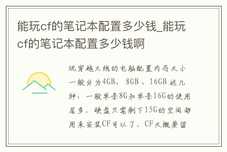 - 能玩cf的筆記本配置多少錢_能玩cf的筆記本配置多少錢啊