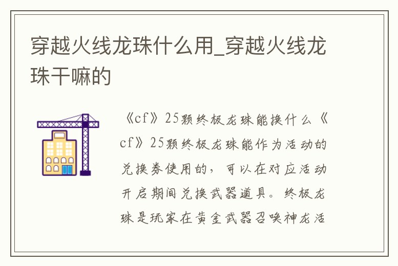 穿越火線龍珠什么用_穿越火線龍珠干嘛的