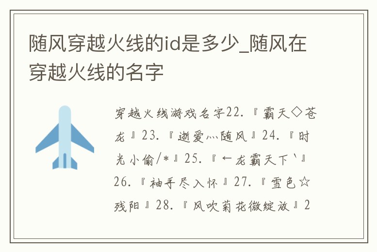 隨風穿越火線的id是多少_隨風在穿越火線的名字