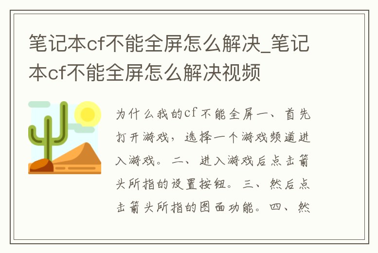 筆記本cf不能全屏怎么解決_筆記本cf不能全屏怎么解決視頻