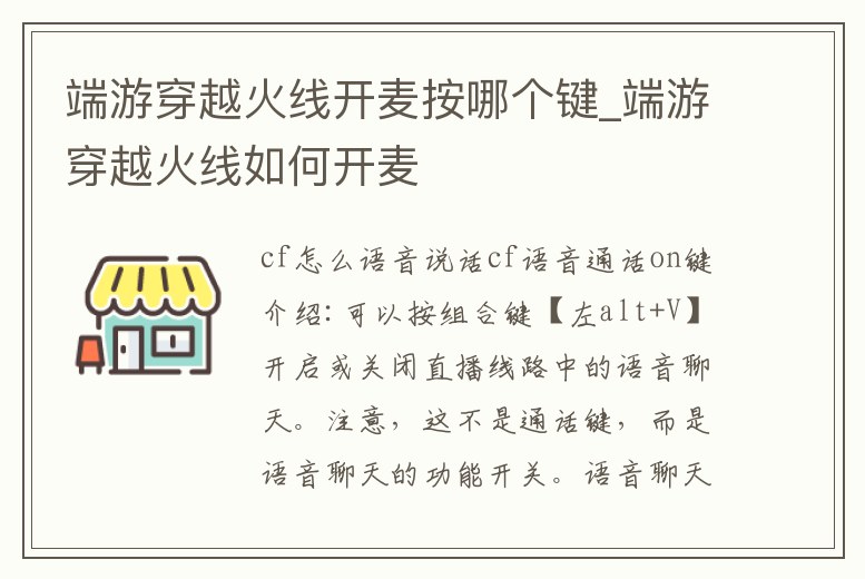 端游穿越火線開麥按哪個鍵_端游穿越火線如何開麥
