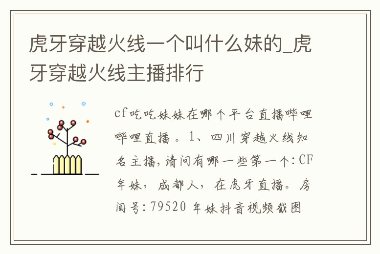 - 虎牙穿越火線一個叫什么妹的_虎牙穿越火線主播排行