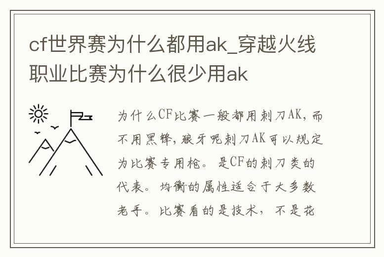cf世界賽為什么都用ak_穿越火線職業(yè)比賽為什么很少用ak