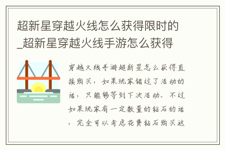 超新星穿越火線怎么獲得限時的_超新星穿越火線手游怎么獲得