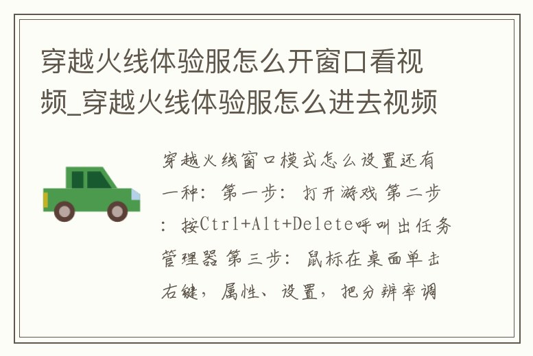 穿越火線體驗服怎么開窗口看視頻_穿越火線體驗服怎么進去視頻