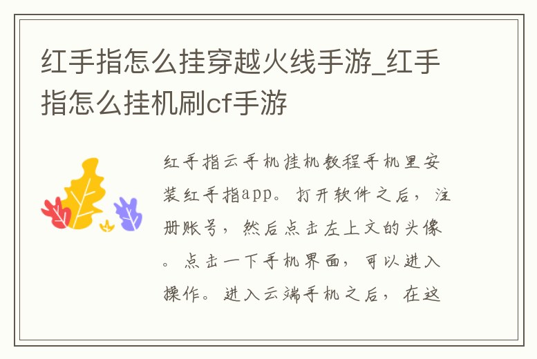 - 紅手指怎么掛穿越火線(xiàn)手游_紅手指怎么掛機(jī)刷cf手游