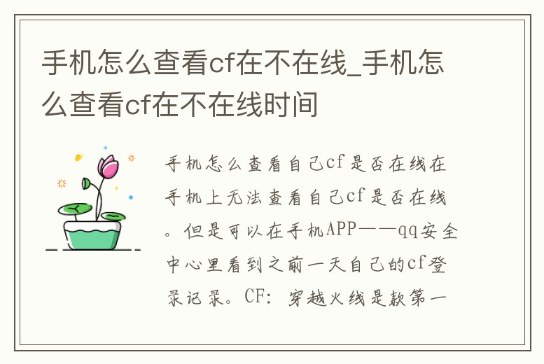 手機怎么查看cf在不在線_手機怎么查看cf在不在線時間