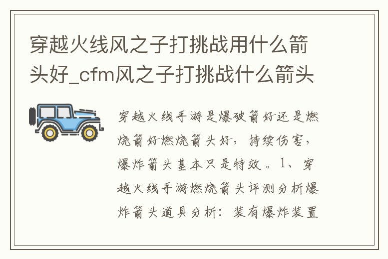 燃燒箭頭好。爆炸箭頭是可以打出爆炸效果,而燃燒箭頭可以打出燃燒效果,因此燃燒箭頭的優勢是明顯大于于爆炸箭頭。 爆炸箭頭道具分析,裝有爆炸裝置的特殊。cf手游風之子怎么不擴散了?如果是挑戰模式,配合使用箭頭,可以。