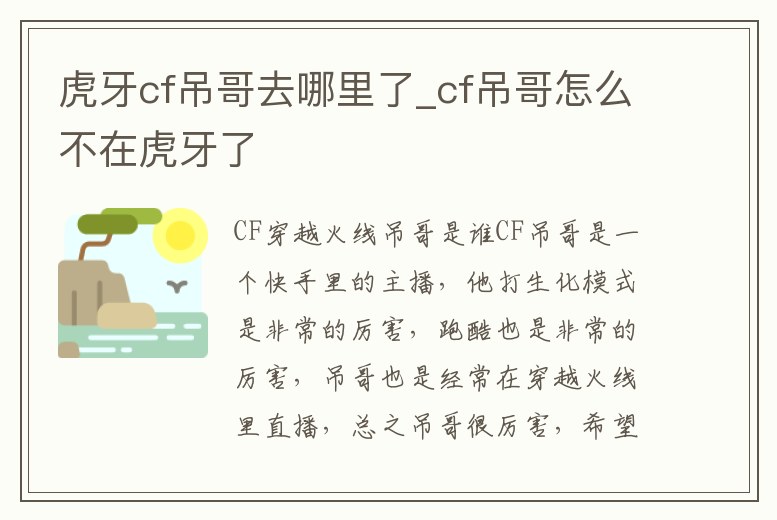 虎牙cf吊哥去哪里了_cf吊哥怎么不在虎牙了