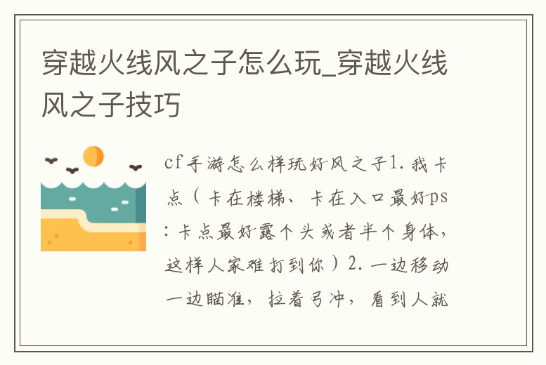 - 穿越火線風(fēng)之子怎么玩_穿越火線風(fēng)之子技巧