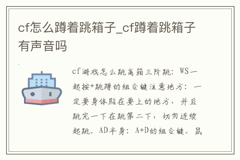 cf怎么蹲著跳箱子_cf蹲著跳箱子有聲音嗎