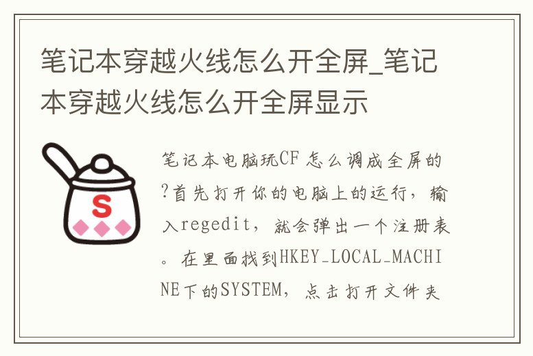 筆記本電腦玩CF 怎么調成全屏的?首先打開你的電腦上的運行,輸入regedit,就會彈出一個注冊表。在里面找到HKEY_LOCAL_MACHINE下的SYSTEM,點擊打開文件夾。進入SYSTEM的文件夾后,點擊找到ControlSet001以及它下面的Control文件。之后在文件夾里找到。1、穿越火線怎么調分辨率(適應14寸筆記本寬屏的)首先我們需要登錄穿越火線游戲,進入到首頁。我們在這個