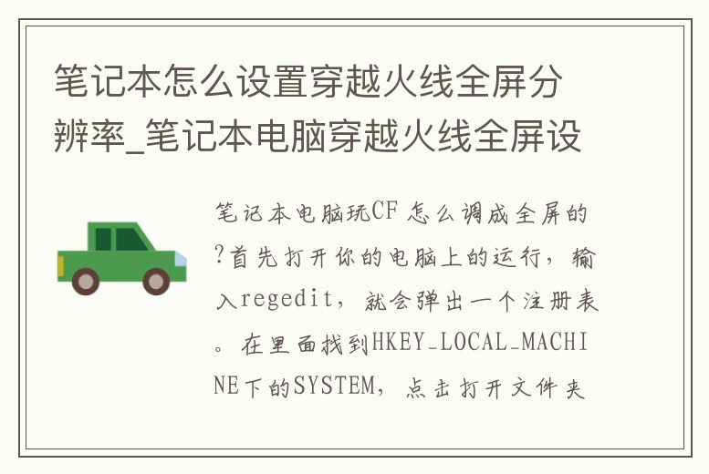 筆記本電腦玩CF 怎么調成全屏的?首先打開你的電腦上的運行,輸入regedit,就會彈出一個注冊表。在里面找到HKEY_LOCAL_MACHINE下的SYSTEM,點擊打開文件夾。進入SYSTEM的文件夾后,點擊找到ControlSet001以及它下面的Control文件。之后在文件夾里找到。1、穿越火線筆記本怎么全屏A卡的筆記本首先把屏幕分
