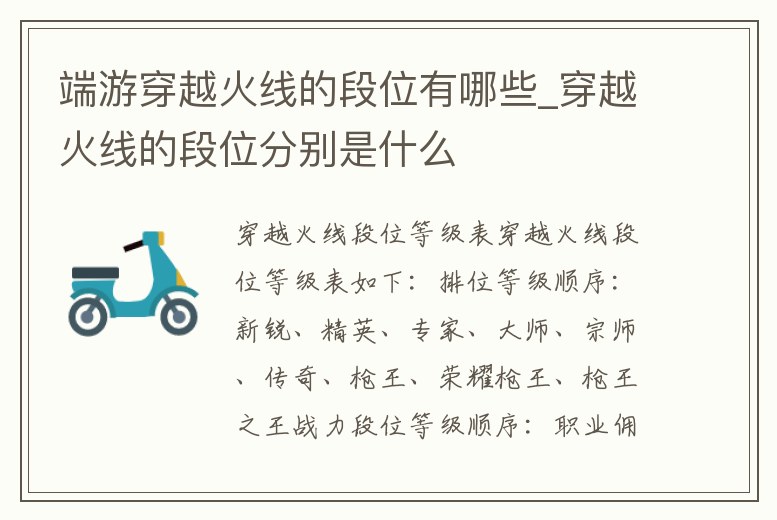 端游穿越火線的段位有哪些_穿越火線的段位分別是什么