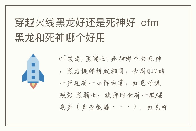 穿越火線黑龍好還是死神好_cfm黑龍和死神哪個好用
