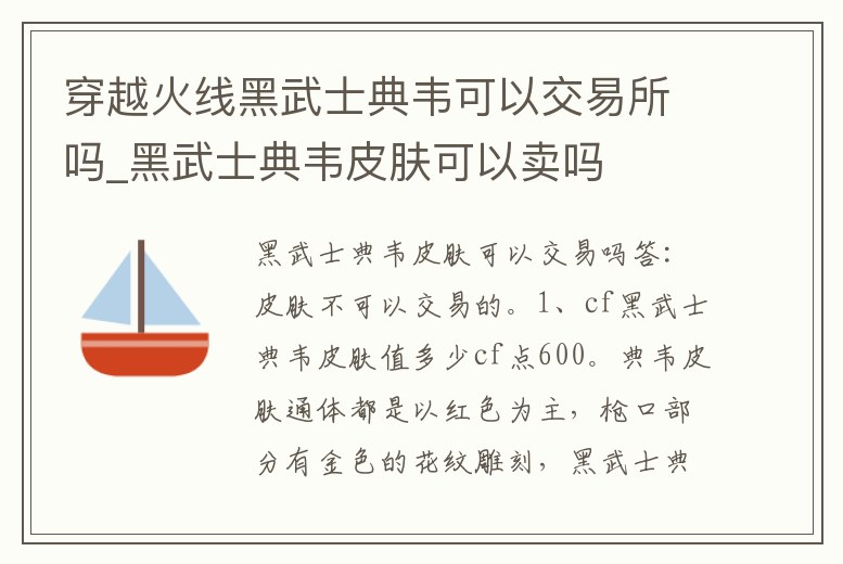 穿越火線黑武士典韋可以交易所嗎_黑武士典韋皮膚可以賣嗎