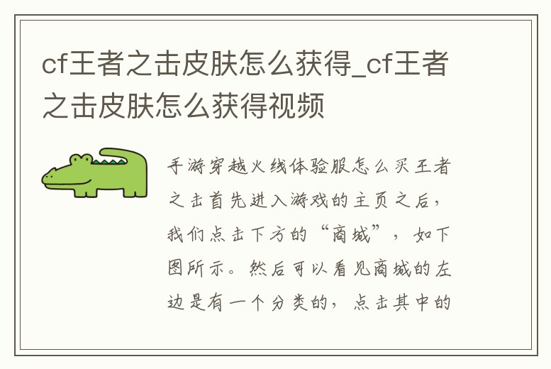 cf王者之擊皮膚怎么獲得_cf王者之擊皮膚怎么獲得視頻