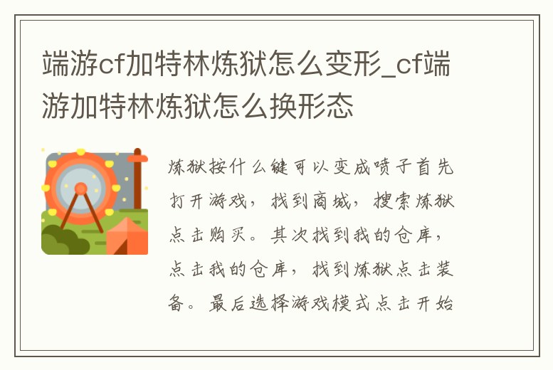 端游cf加特林煉獄怎么變形_cf端游加特林煉獄怎么換形態