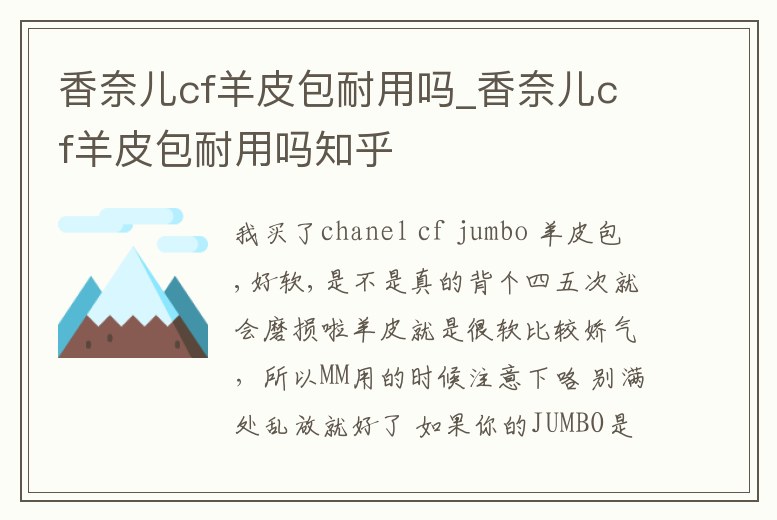 香奈兒cf羊皮包耐用嗎_香奈兒cf羊皮包耐用嗎知乎